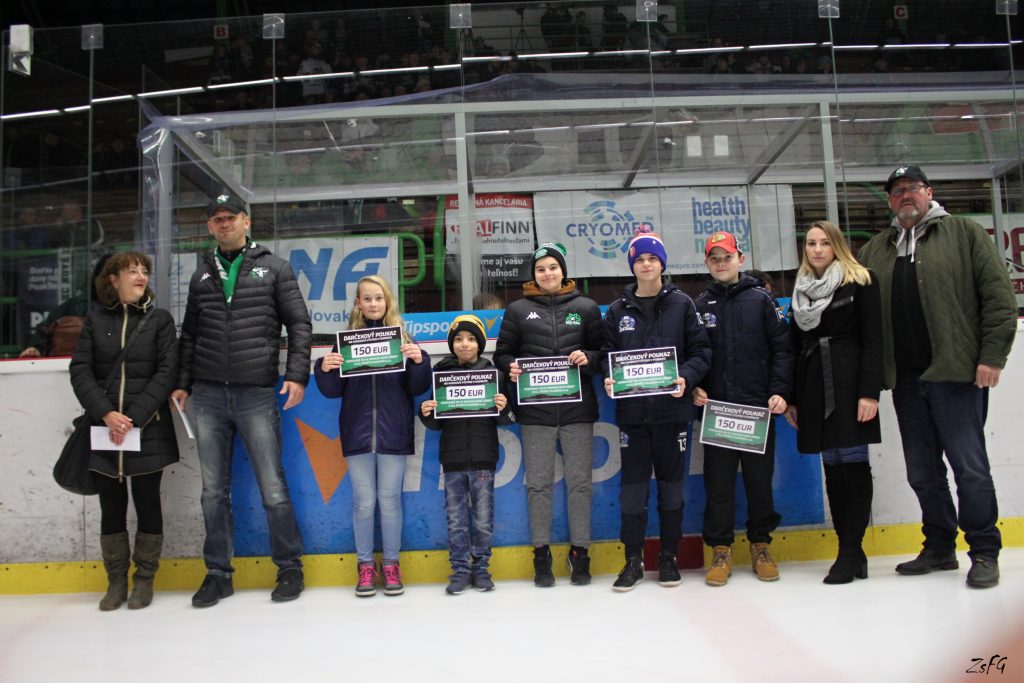 Pred zápasom odovzdali generálny manažér klubu Michal Tóth a marketingová manažérka Alexandra Tvrdoňová poukážky v hodnote 200€ mame s 3 deťmi, ktorá sa ocitla v nepriaznivej sociálnej situácii. Zároveň prostredníctvom zástupcu fanklubu poslali bývalému členovi fanklubu Marekovi poukážku v hodnote 200€ na nákup liekov. V neposlednom rade sa poukážky na hokejový výstroj v hodnote 150€ (v celkovej hodnote 750€) dočkali piati malí hokejisti z novozámockej mládeže.